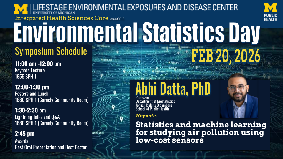 Feb202026 Environmental Statistics Day Symposium Keynote Speaker: Abhi Datta, PhD (Johns Hopkins Univ) Statistics and machine learning for studying air pollution using low-cost sensors